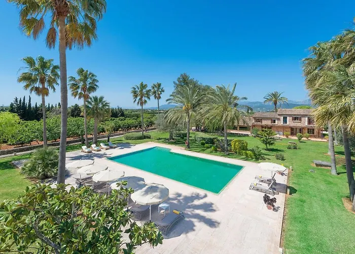 Die Villa Can Duro - Luxus Finca mit einem Swimmingpool ist 40 Autominuten von Wasserpark Aqualand El Arenal entfernt. Die Unterkunft ist mit 6 Schlafzimmern und 8 Badezimmern ausgestattet.